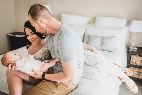 A relaxed and intimate photo shoot at your home, focusing on your newborn baby and immediate family (newborn, parents and siblings).